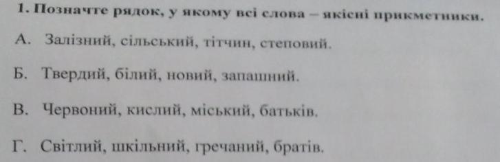 Позначте рядок у якому всі слова якісні прикметники ПОМОГИТЕ ПОЖАЛУЙСТА!!!!!!!!!!!!!!!!!!!!!!!!!!!!!