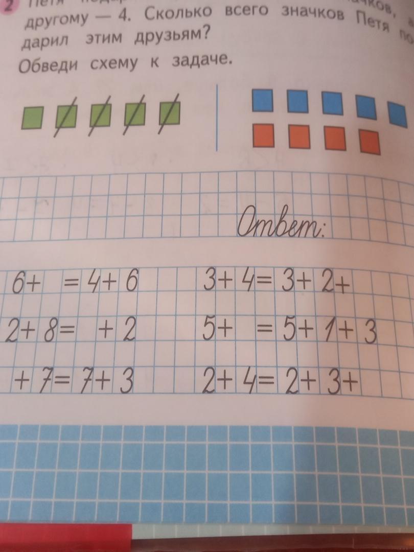 а пример 3+4=7, в нашем случае пример уже начали, но надо закончить