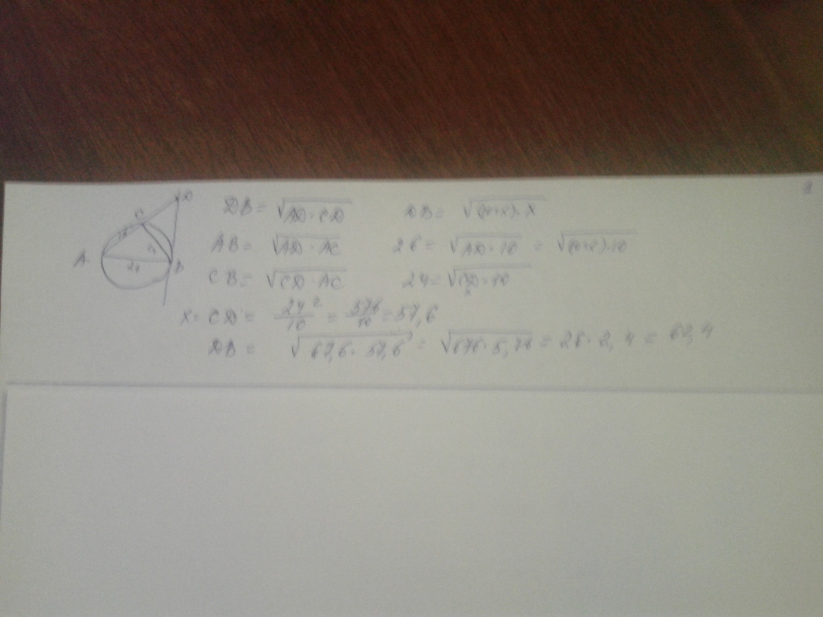 AB-диаметр окружности, равный 26, AC-хорда. Из точки B проведен перпендикуляр к хорде, равный 24, и касательная, пересекающая продолжение хорды в точке D. Найдите длину отрезка BD. В ответ запишите 5*BD.