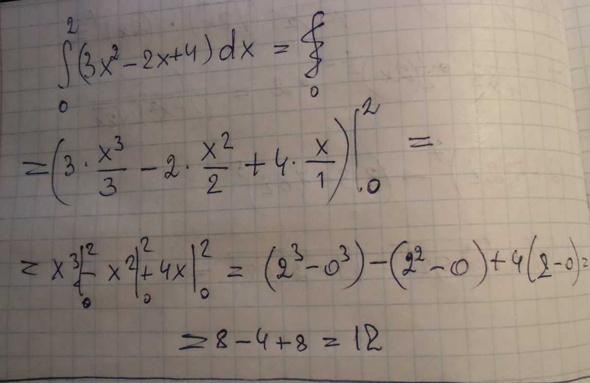 ЛЮДИИИИИ !!! НУНА ПОМОЩЬ... это определенный интеграл... ∫ сверху2 внизах0 (3x^2-2x+4)dx помогите с подробным решением