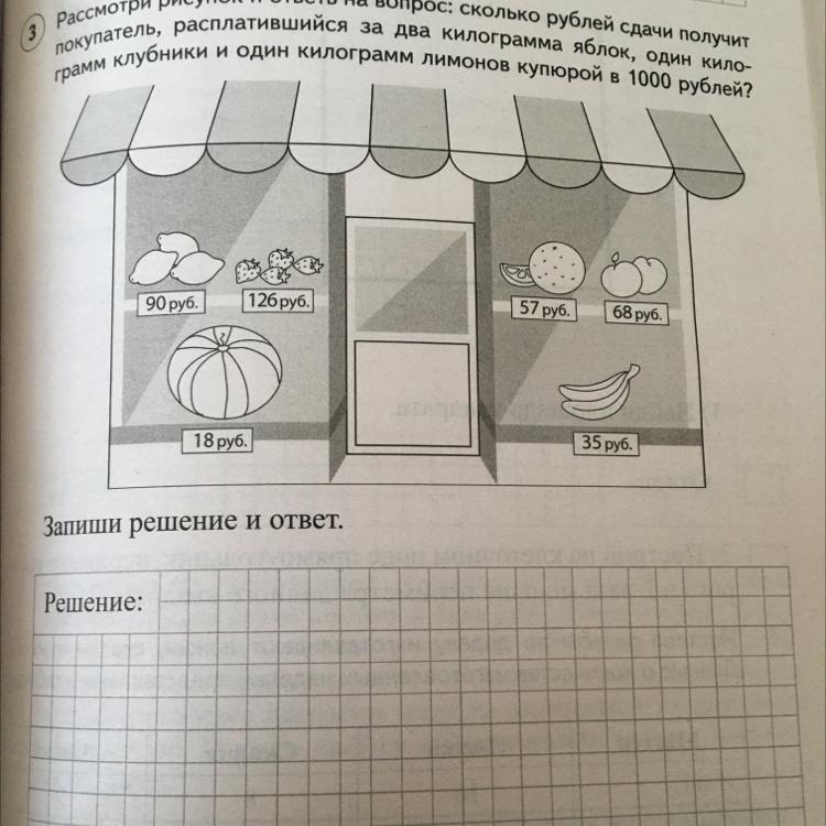 Рассмотри рисунок и ответы на вопрос: сколько рублей сдачи получит