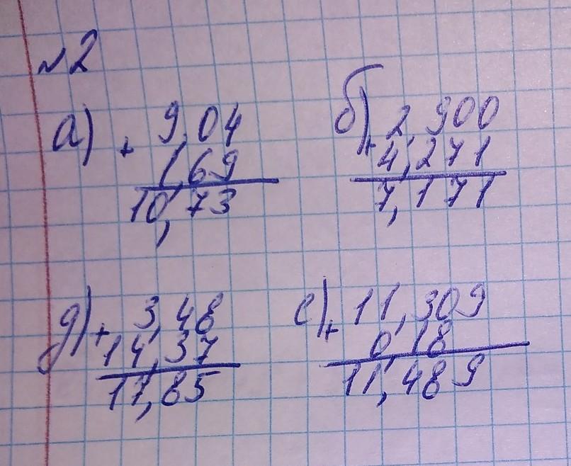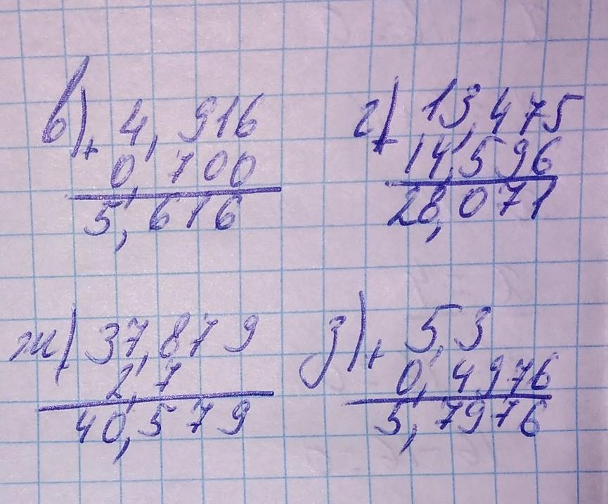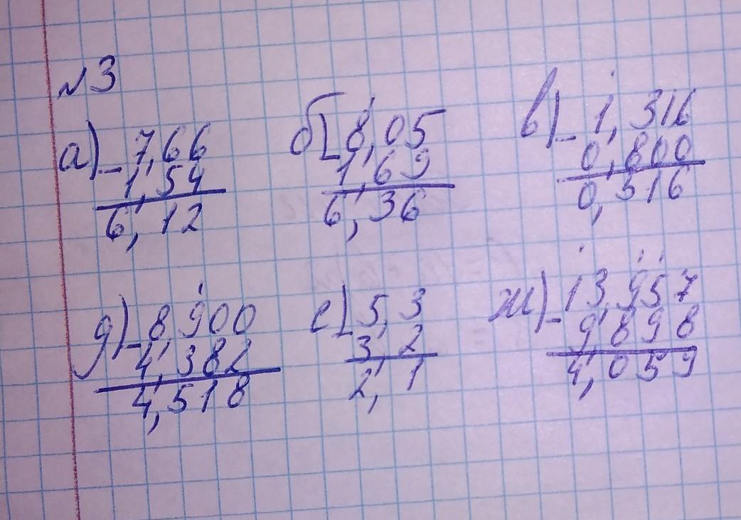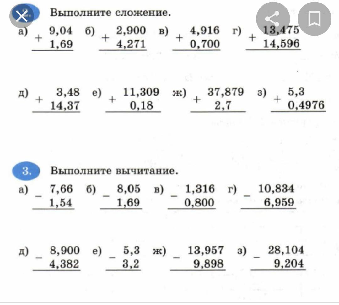 Выполните сложение. 9,04 6) 2,900 в) 1,69 + 4,271 3,48 e) 14,37 11,309 ж) 0,18 Выполните вычитание. + + 4,916 г) 0,700 + 13,475 14,596 37,879 3) 2,7 7,66 б) 8,05 в) 1,316 г). 1,54 8,900 e) 4,382 1,69 5,3 ж) 3,2 0,800 13,957 3) 9,898 + 5,3 0,4976 10,834 6,959 28,104 9,204