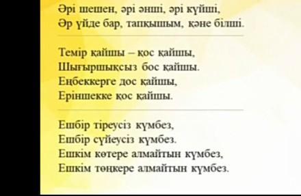 Ответ:темір қайшы,қос қайшы,дос қайшы,бос қайшы,тіреусіз күмбез ,сүйеусіз күмбез