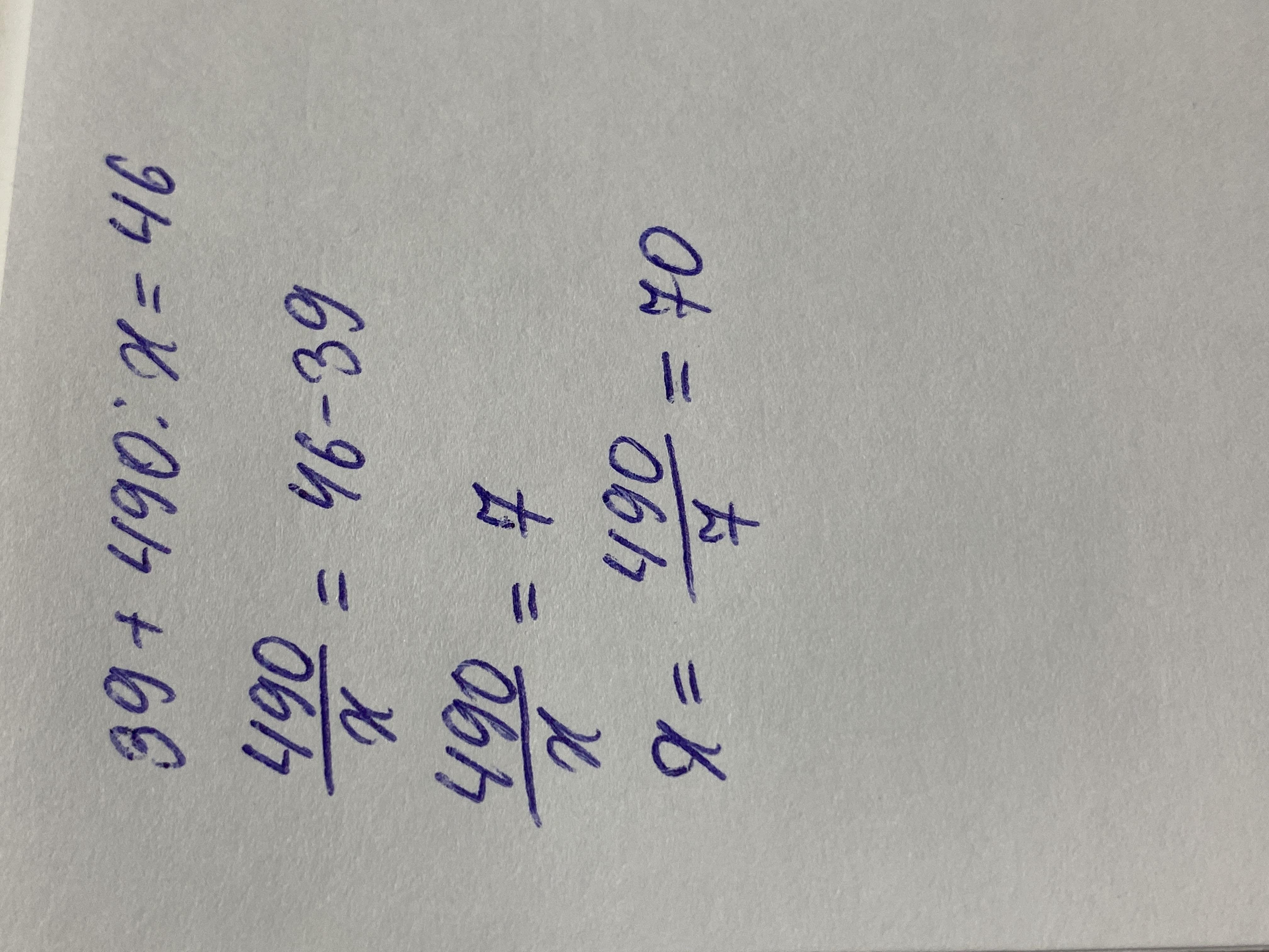 490÷x=46-39