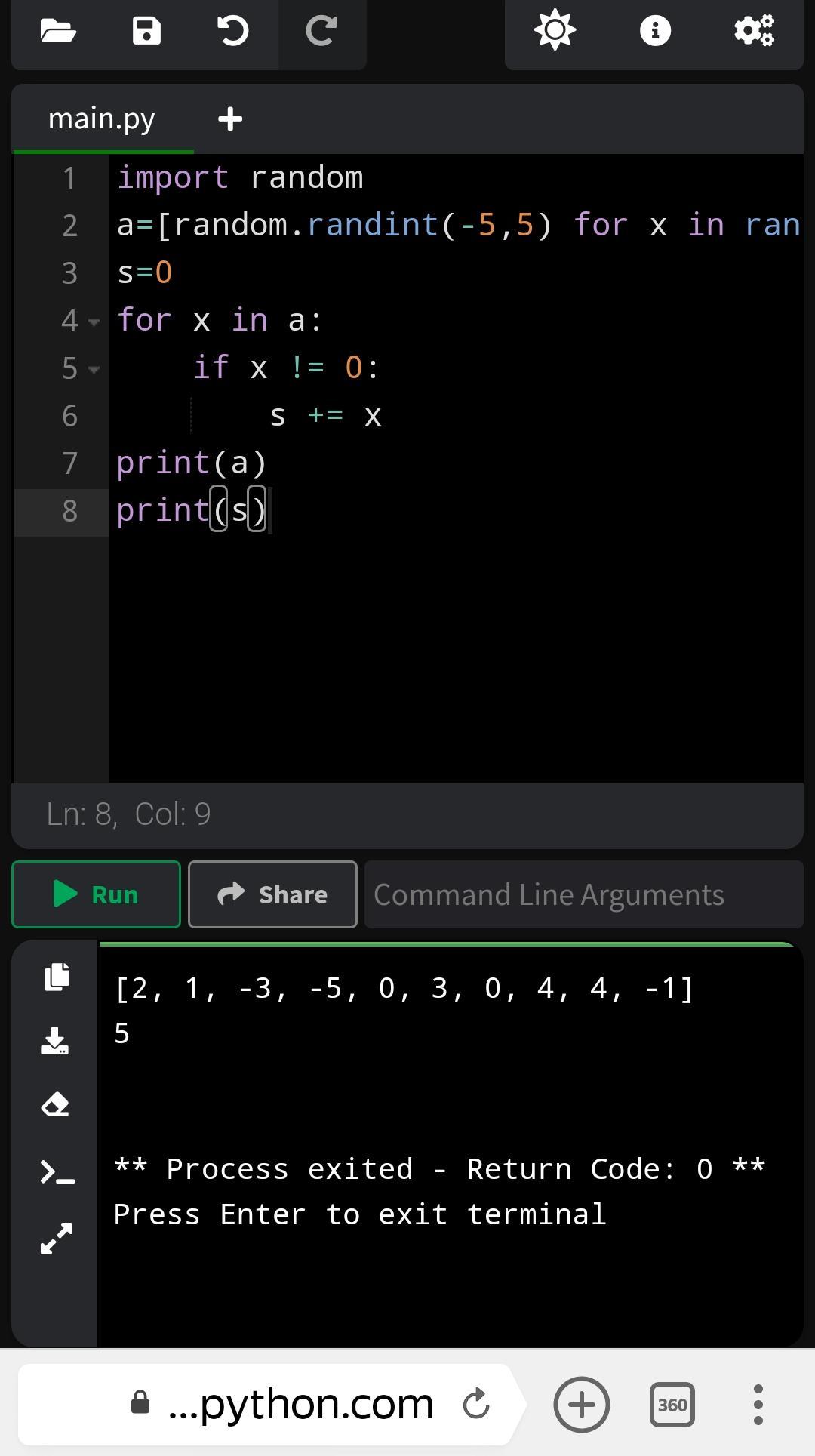 Напишите программу, которая заполняет массив из 10 элементов случайными целыми числами на отрезке [–5; 5] и находит сумму ненулевых элементов массива.( язык Python ) СРОЧНО!!!!ДАЮ 50 БАЛЛОВ