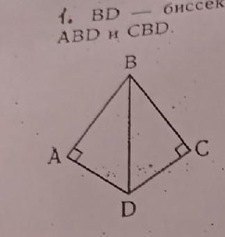 Биссектриса это прямая, делящая угол на пополам, то-есть углы, которые делит биссектриса будут равны. Из этого следует что треугольники ABD и CBD равны между собой.