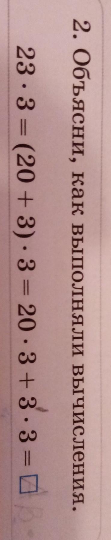 Используется переместительное свойство умножения. Где делят 23 на разряды(20+3) умножая их на 3. Потом отдельно все перемножают и получается 69