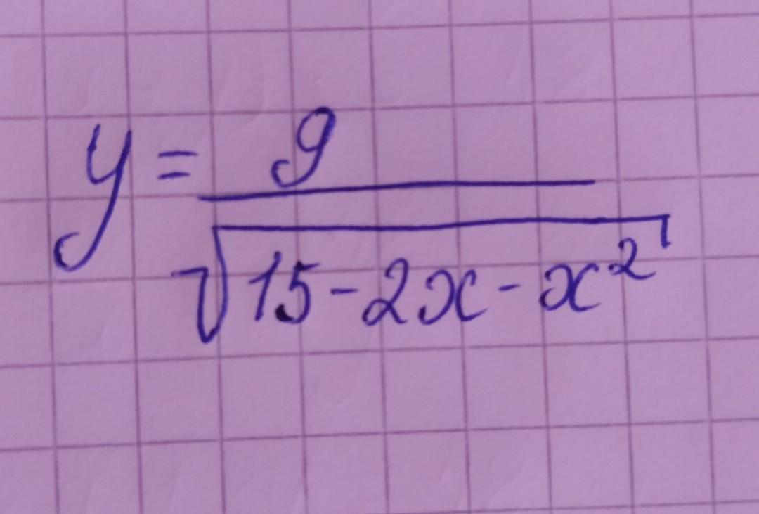Какова область определения функции у = 9/√15 - 2х - х²?