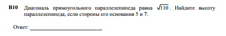 d^2=a^2+b^2+c^2 от сюда следует , что d= корню квадратному из a^2+b^2+c^2