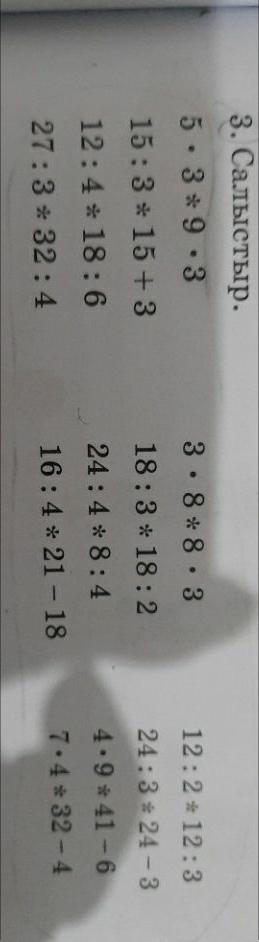 3. Салыстыр. 5 3*9•3 15:3*15+ 3 12:4 * 18:6 27:3 * 32: 4 3 .8* 8 • 3 18 :3 * 18 : 2 24:4 *8:4 16:4 * 21 - 18 | 12:2 * 12:3 24:3*24 -3 | 4.9* 41 - 6 7-4 *32-4