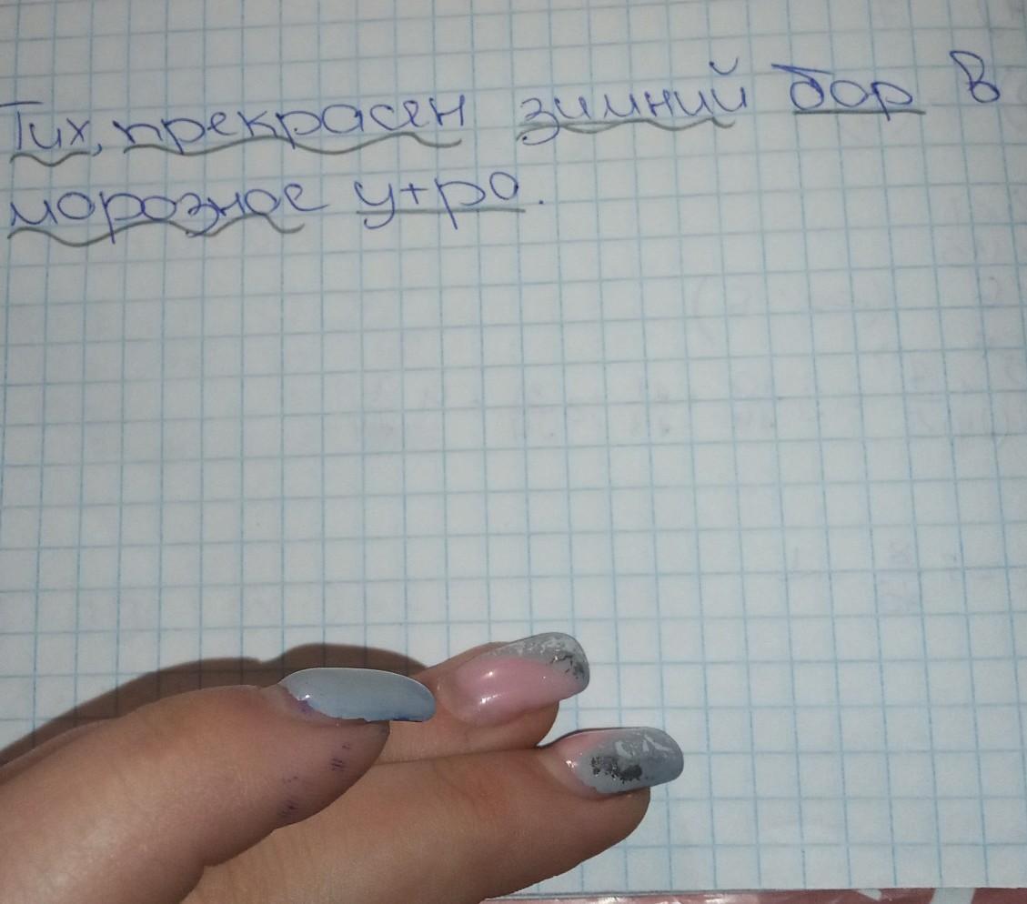 Спишите предложение, расставьте пропущенные знаки препинания,подчеркните прилагательным как члены предложения: Тих прекрасен зимний бор в морозное утро