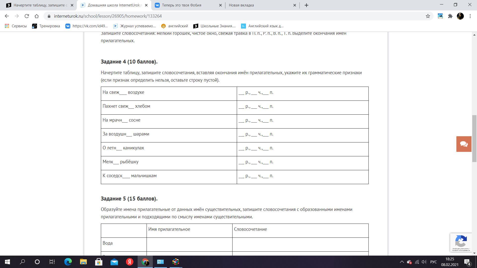 Начертите таблицу, запишите словосочетания, вставляя окончания имён прилагательных, укажите их грамматические признаки (если признак определить нельзя, оставьте строку пустой).