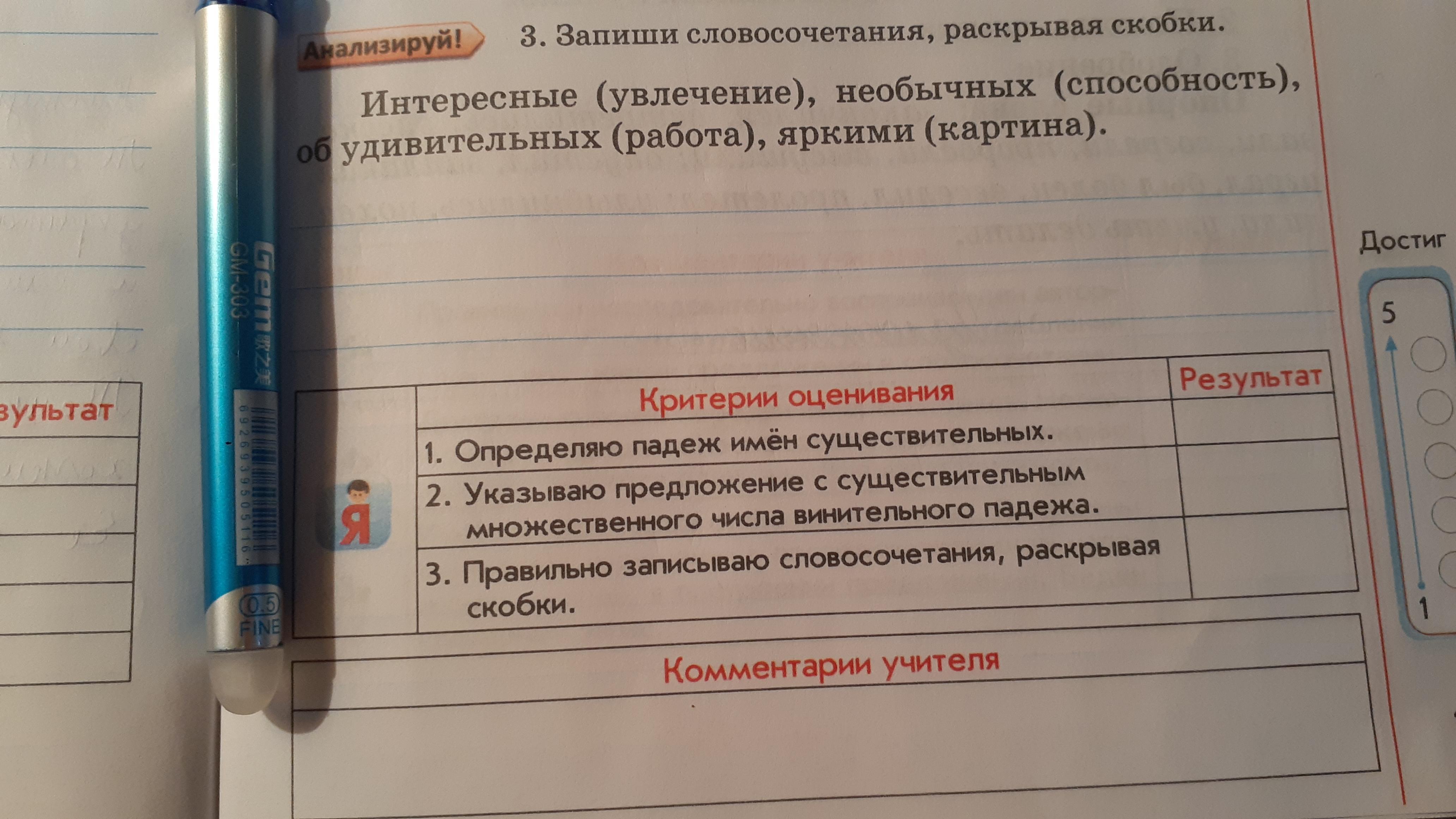 Помогите пожалуйста сделать третье задание анализируй Запиши словосочетания раскрывая скобки