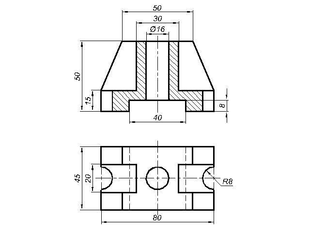 Начертить вид спереди и сверху. Выполнить на фронтальной проекции( вид спереди) разрез. Заранее спасибо!!