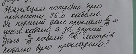1) (96 : 16) х 5 = 30 (м) - кабеля проложили за первый день