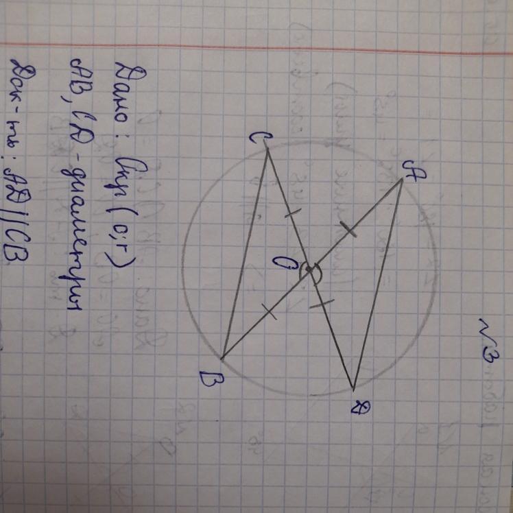 Из условия задачи СО=АО=ДО=ВО как радиуси круга и угли /_СОВ=/_АОД как вертикальние