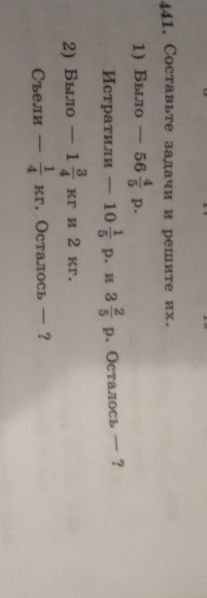 1) 56 4/5-10 1/5-3 2/5=43 1/5 р. осталось