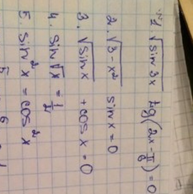 корень( sin(3x))=0 или tg(2x-pi/6) = 0