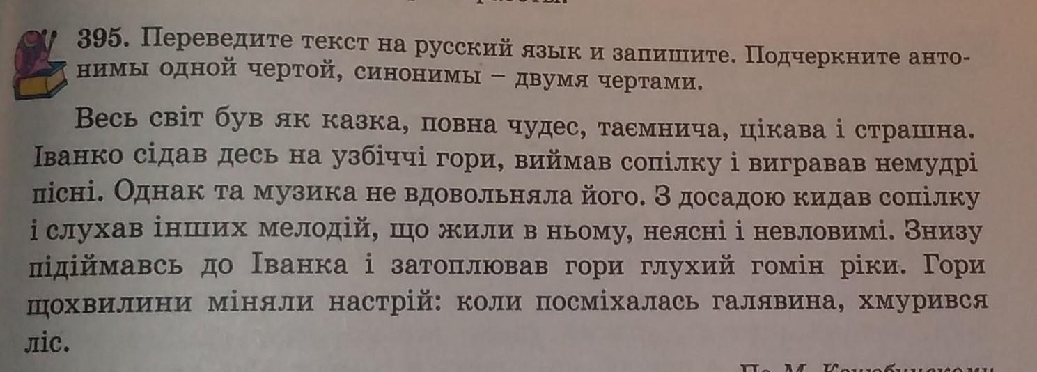 Весь свет был,как сказка, полная чудес,тайная,интересная и страшная. Иван сидел здесь на краю горы,вынимал дудку и играл немудренные песни. Однако эта музыка не не устраивала его. С досадой кинул дудку и слушал остальные мелодии, которые жили в нём ,неясные и неуловимые. Снизу поднималась к Ивану затоплял горы глухой рокот реки. Горы каждую минуту меняли настроение: когда смеялась поляна, хмурился лес.