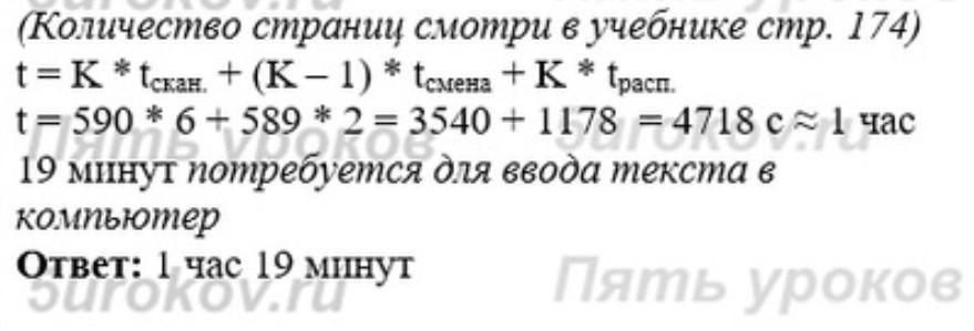 2.Сколько времени потребуется для ввода в память компьютера текста романа Л.Н Толстого , «Война и мир» с помощью сканера и программы ABBY FineReader, если известно, что текст выполнен на 684 страницах ,на сканирование одной страницы уходит 4 сек, на смену страницы в сканере 7 сек, на распознание страницы 3 сек?