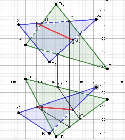 Построены проекции двух плоскостей АВС и EDK по координатам из таблицы вариант 13.