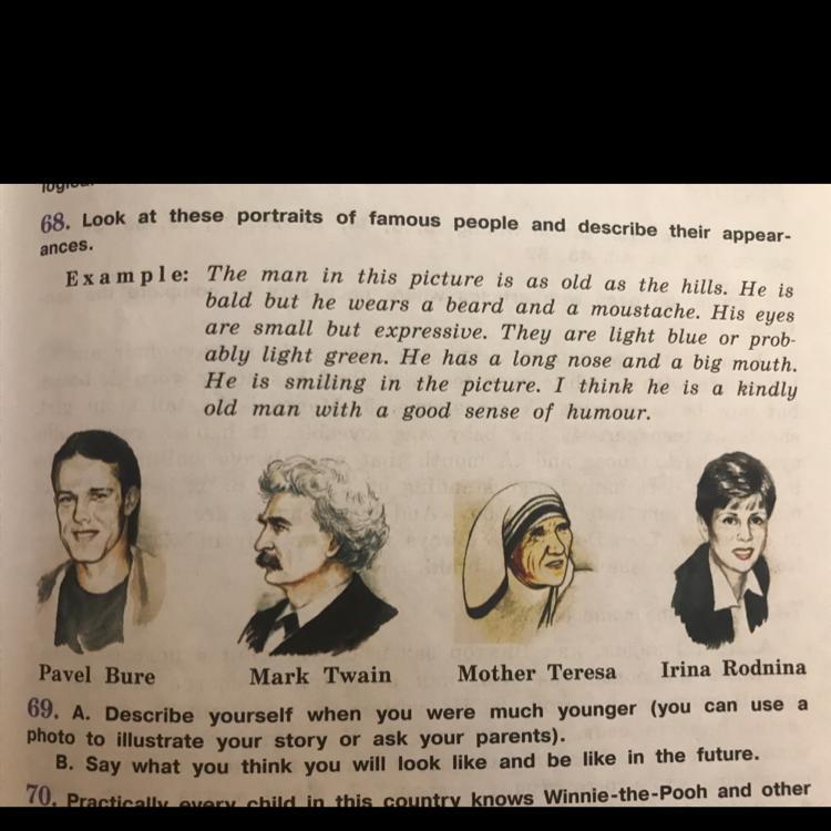 68. Look at these portraits of famous people and describe their appear-