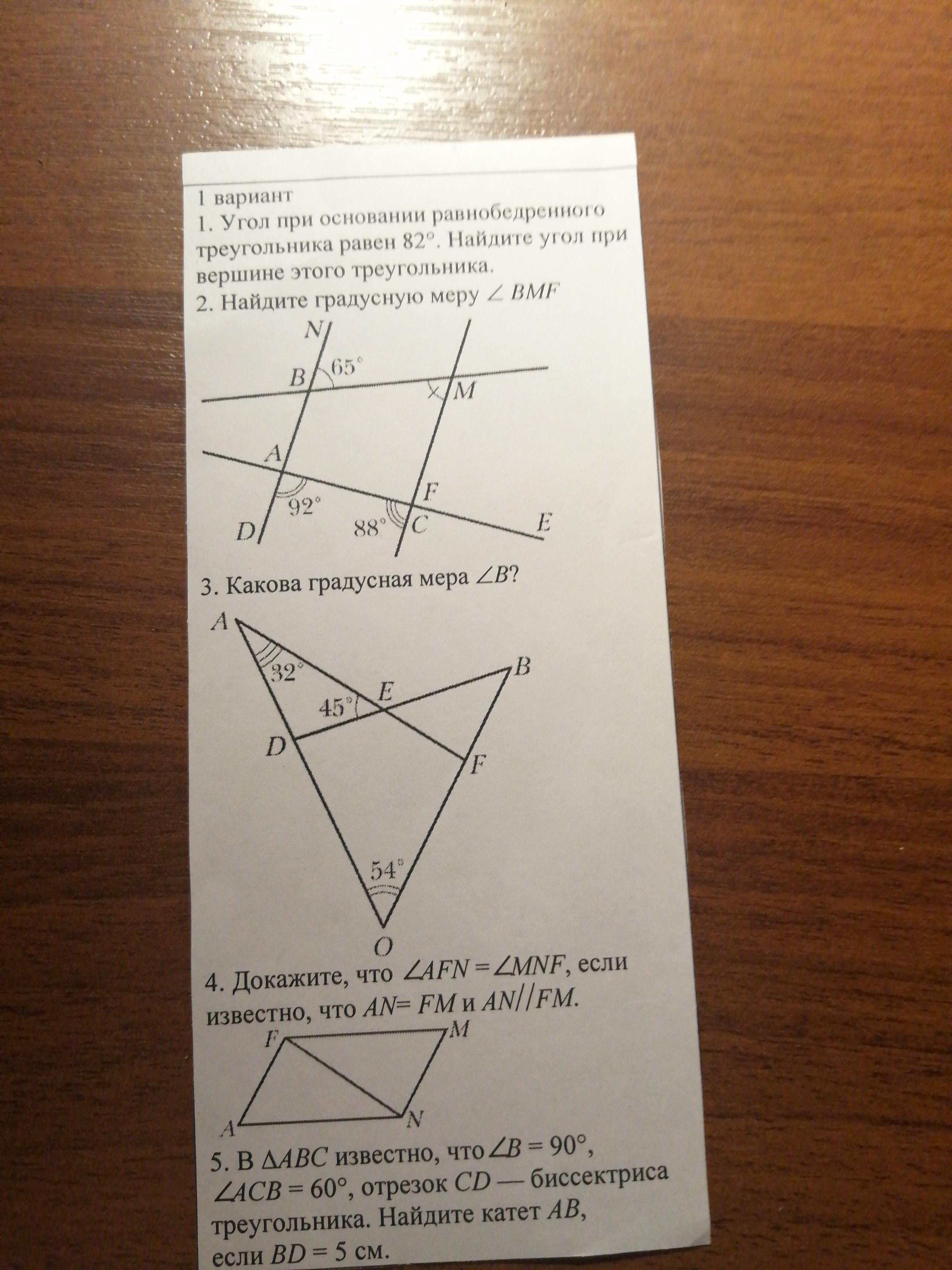 3) угл adf = 180-(45+32) = 103 градуса. Следовательно: bdf = 180-103, так как они смежные, следовательно равно 77 градусам. Из этого мы может найти угл b. 180-(77+54) = 49 градусов.