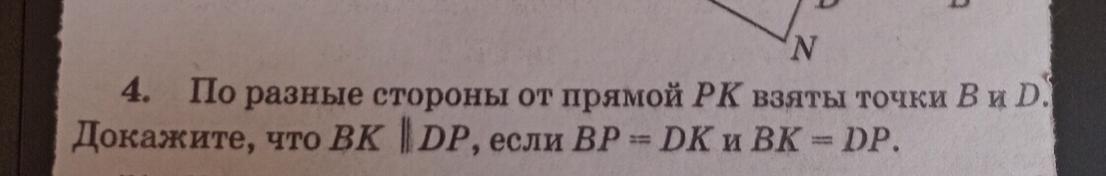 тр-к РВК= тр-ку КДР , т к ВР=DК и ВК=DP по условию и РК общая (3 признак равенства тр-ов)