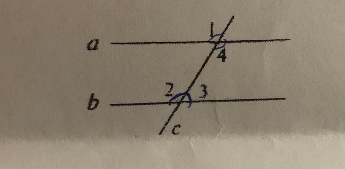 Угол 3 и угол 2- смежные углы, значит угол 2= 180° - угол 3, угол 2 = 180° - 46° = 134°, угол 3 и угол 4- внутренние односторонние углы (при параллельных прямых a и b и секущей c), угол 4= 180° - угол 3, угол 4= 180° - 46° = 134°, углы 4 и 1 - вертикальные углы, значит угол 1 = углу 4 = 134°.