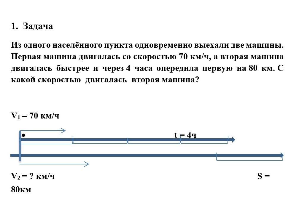 - 70×4=280( км) проехала 1маш.