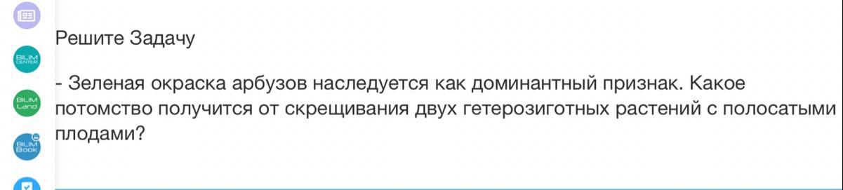 Ответ:При скрещивании получаем : АА Аа Аа аа , значит 25% - темные арбузы 25%- гладкие арбузы 50% - полосатые арбузы.