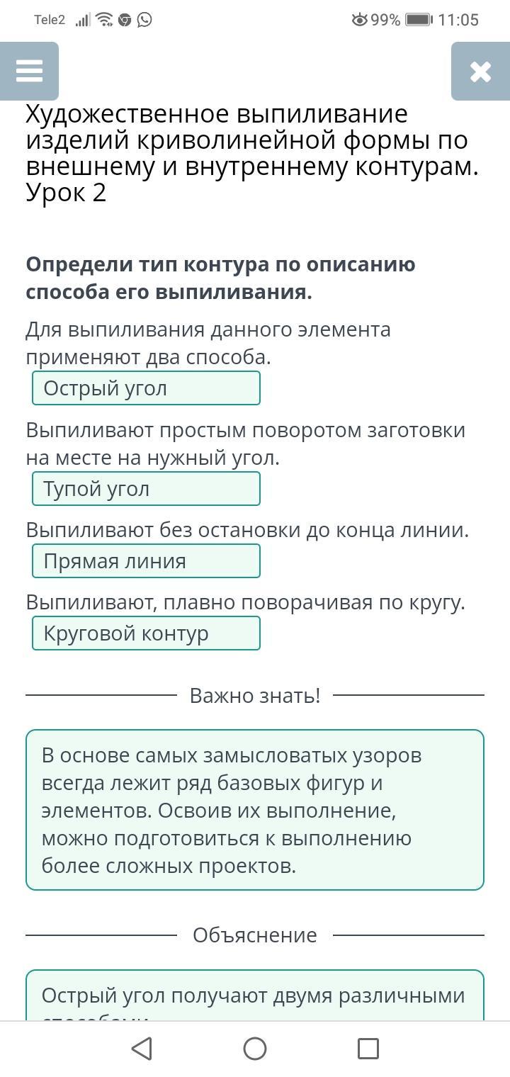 Определи тип контура по описанию способа его выпиливания.