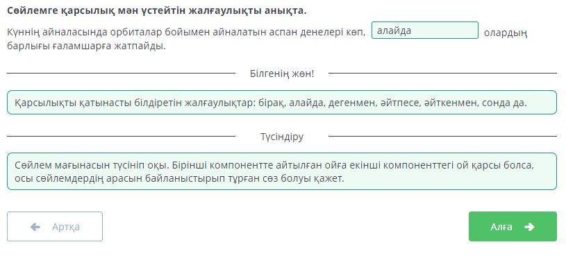 Сөйлемге қарсылық мән үстейтін жалғаулықты анықта.
