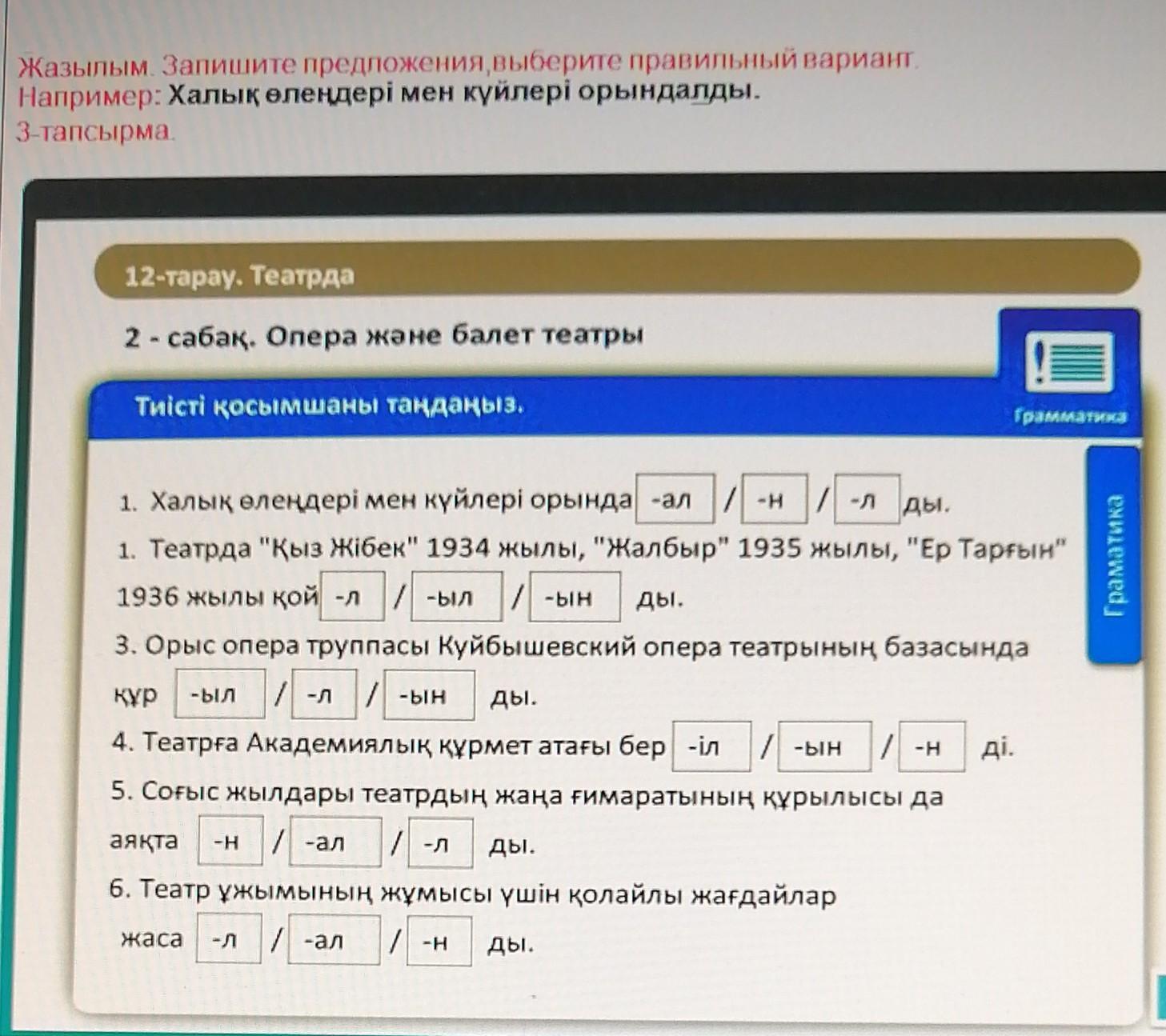 Жазылым. Запишите предложения Выберите правильный вариант.