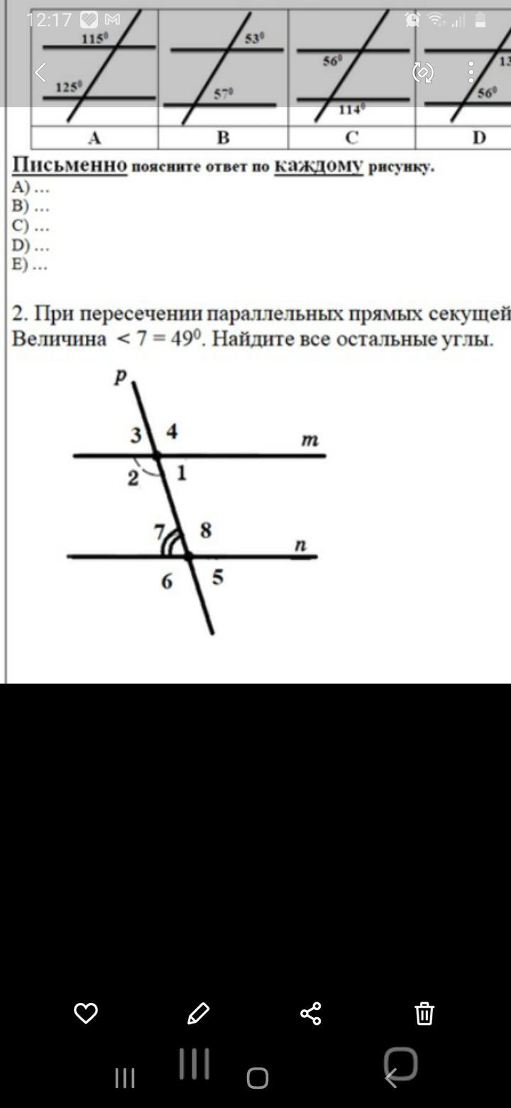 угол 7=углу 1=49(внутренние накрест лежащие)