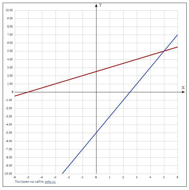 х= 0,5у+2,5 ( теперь меняем как нам привычно х на у и у на х)
