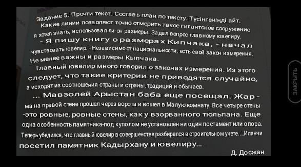 Задание 5. Прочти текст. Составь план по тексту. Түсінгеніңді айт.