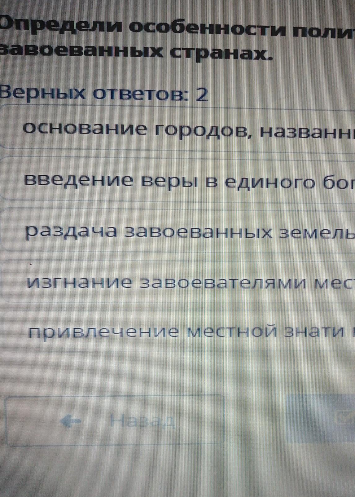 Определи особенности политики Александра Македонского в зпвоеваниях странах. Верных ответов: 2