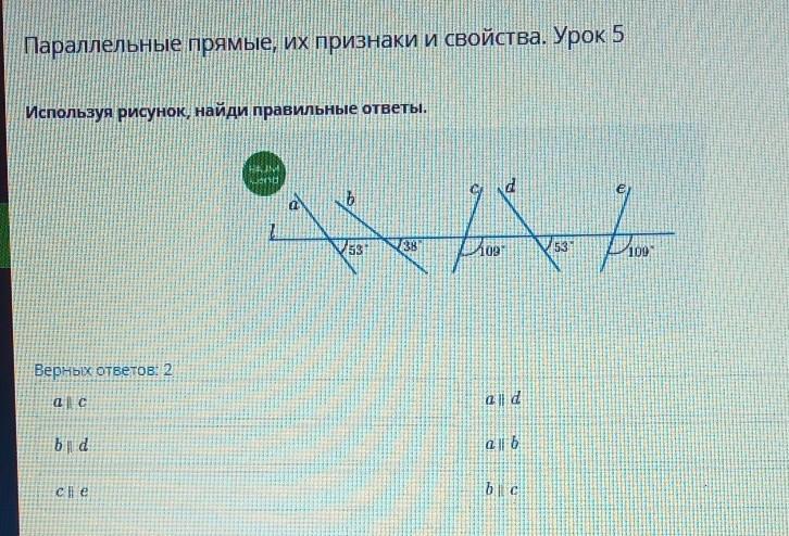 Параллельные прямые, их признаки и свойства. Урок 5