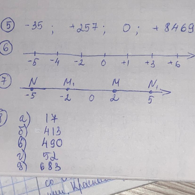 5.Запишите числа, противоположные числам: +35; – 257; 0; – 8469.