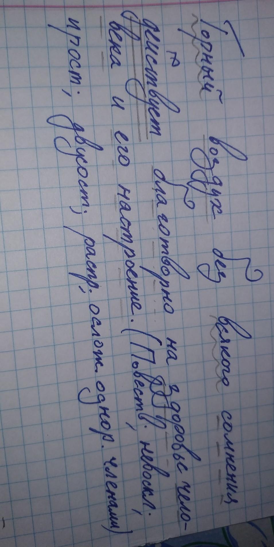 синтаксический разбор предложения: горный воздух без всякого сомнения действует благотворно но здоровье человека и его настроение