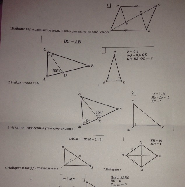 3)./RQE - равнобедренный, т.к. углы при основании равны.(QR=RE), пусть QR=RE=x, QE=y