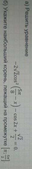 Значит, cos^2(5pi/8-x)=(1-sqrt(2)/2(cos2x+sin2x))/2. Подставим: