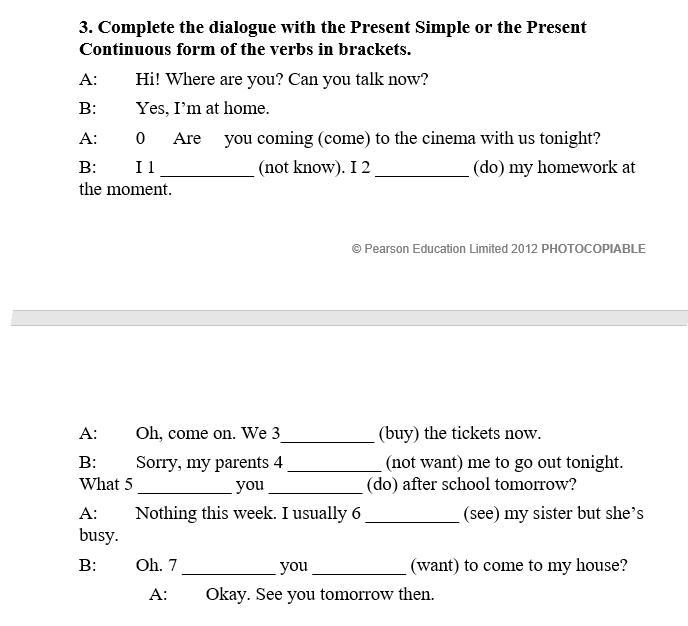 B: sorry, my parents don't want me to go out tonight.what do you do after school tomorrow?