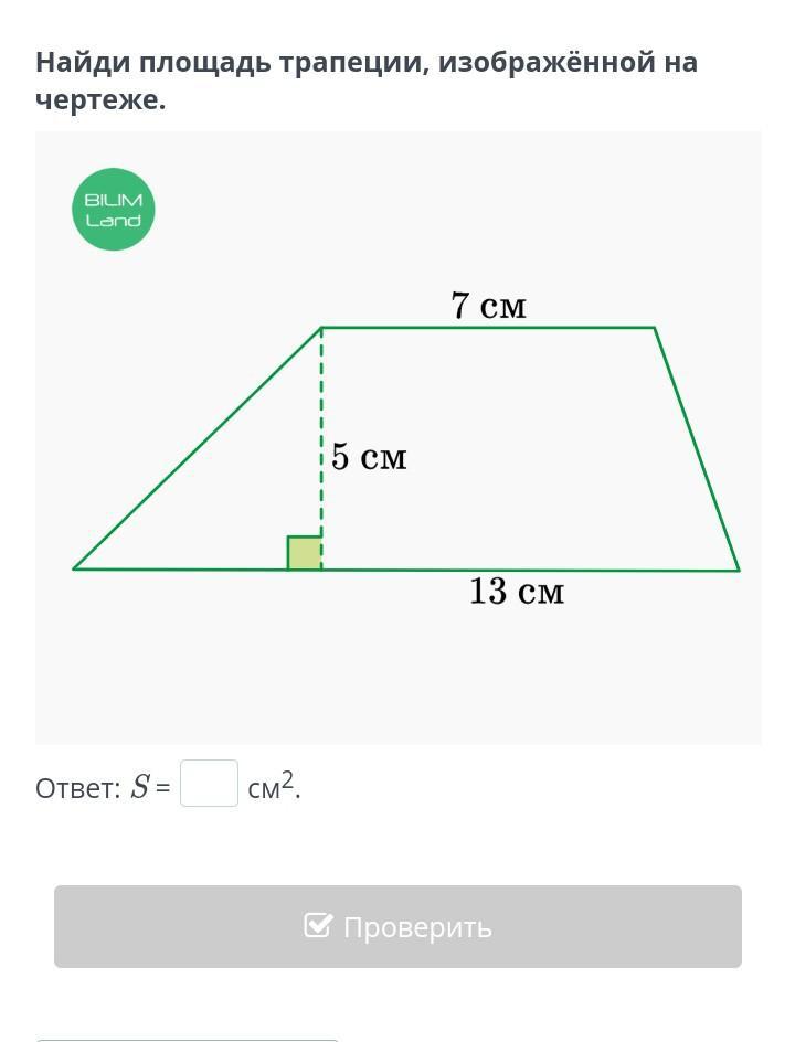 Sтр = ½(7+13)•5 = 10•5 = 50 см².