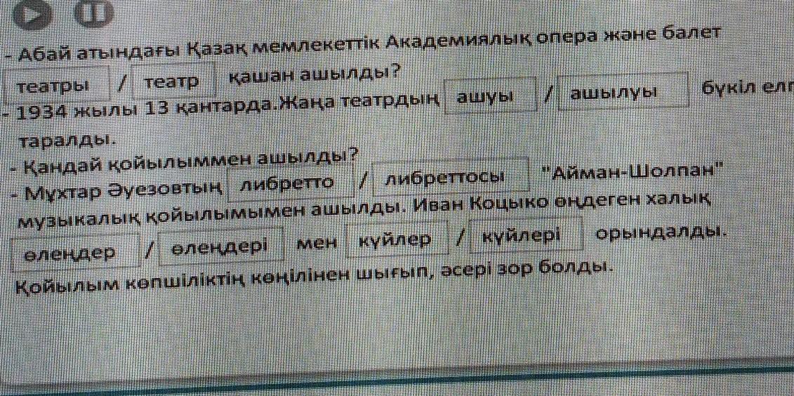 Мұхтар Әуезовтың либретто/либреттосы Айман-Шолпан мкзыкалық қойылыммен ашылды.Иван Коцыко өңдеген халық өлеңдер/өлеңдері мен күйлер/күйлері орындалды.