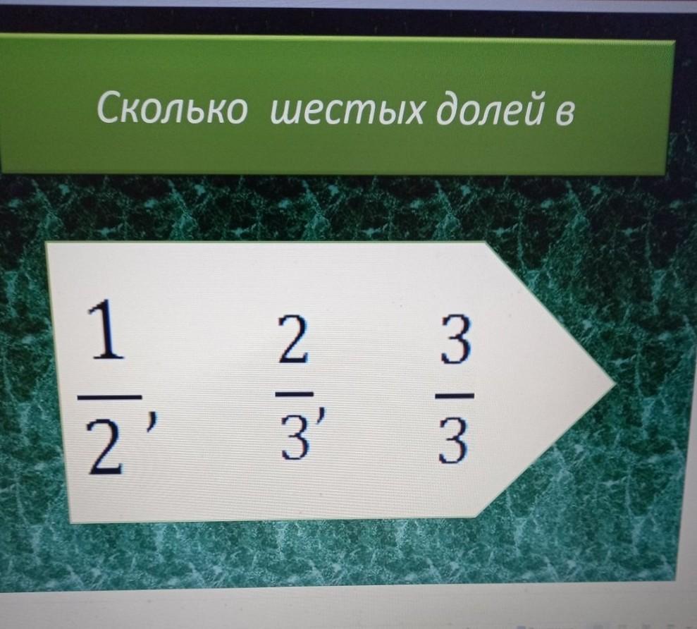 1/2=3/6 . Была дробь 1/2 , надо получить 6-е доли , т е из знаменателя 2 нада получить знаменатель 6 . Для этого 2*3 =6 .но , чтобы величина дроби неизменилась, надо и числитель умножать на это же число 3 , получим 1*3=3 , т е 1/2=3/6