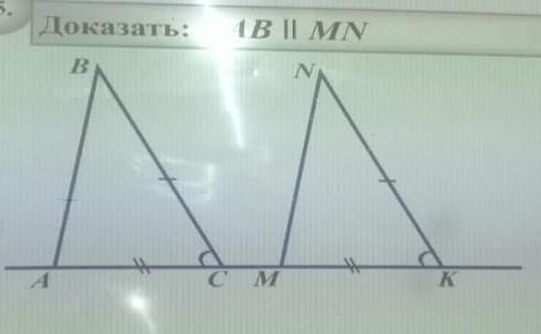 по правилу о подобии треугольников. Вс=нк,ас=МК, и у них общий угол и две равные стороны