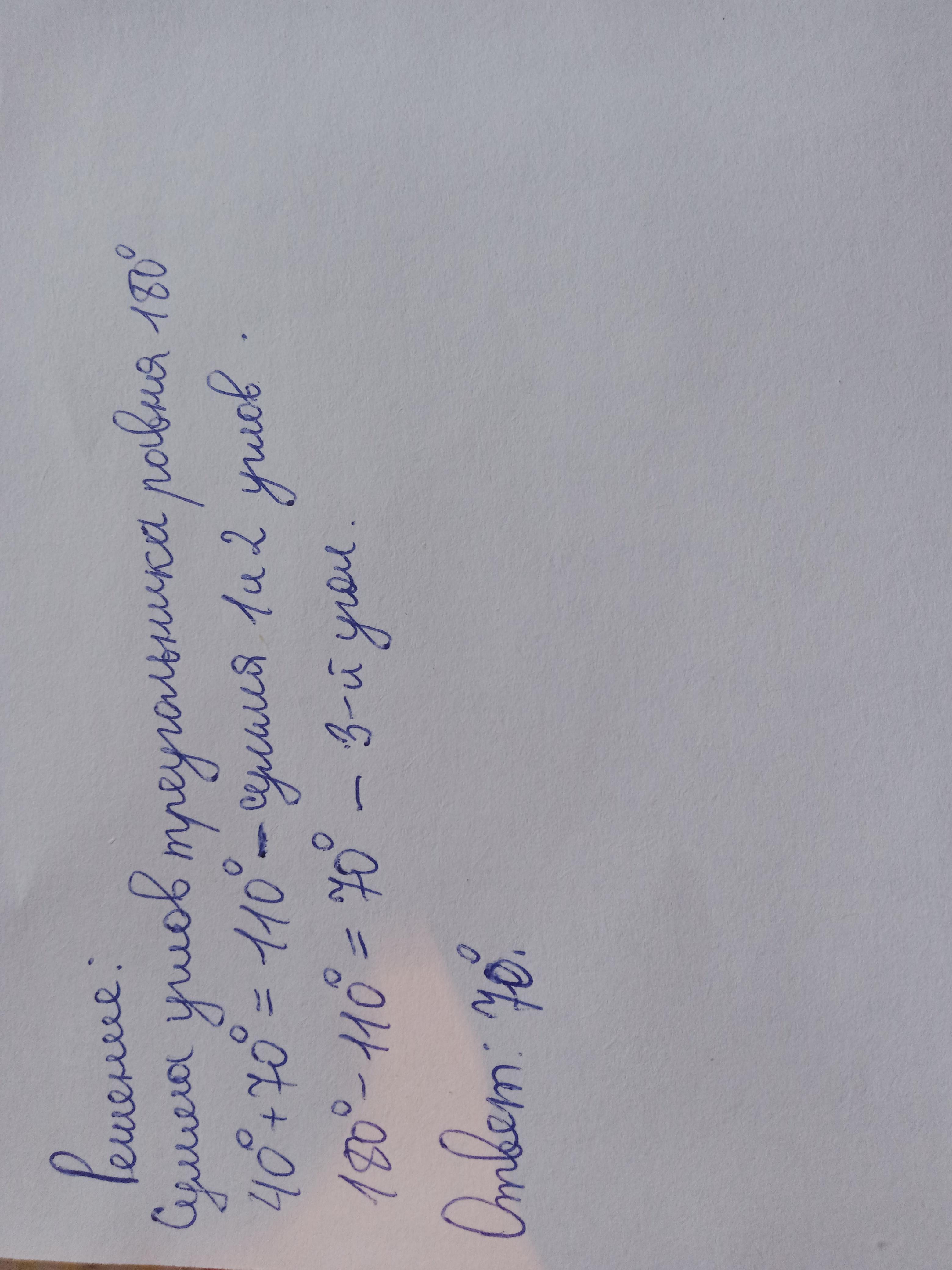 ответьте на вопрос пожалуйста: найдите третий угол триугольника если два его угла равны 40° i 70°
