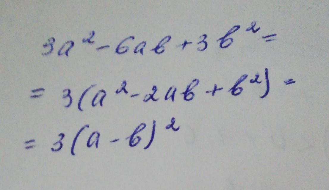 Не могли бы вы помочь? . Представьте в виде произведения: 3а^2-6ав+3в^2.